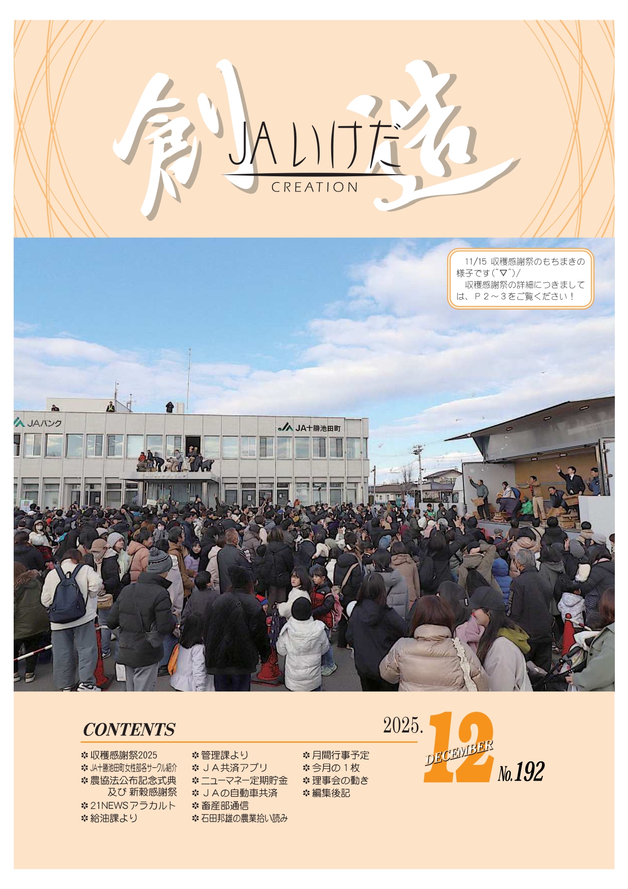 JA営農部にて毎月発行しております、広報誌『創造 CREATION』を掲載いたします。 毎月JAや組合員等の様々な活動を記事にしておりますので是非お読み下さい。