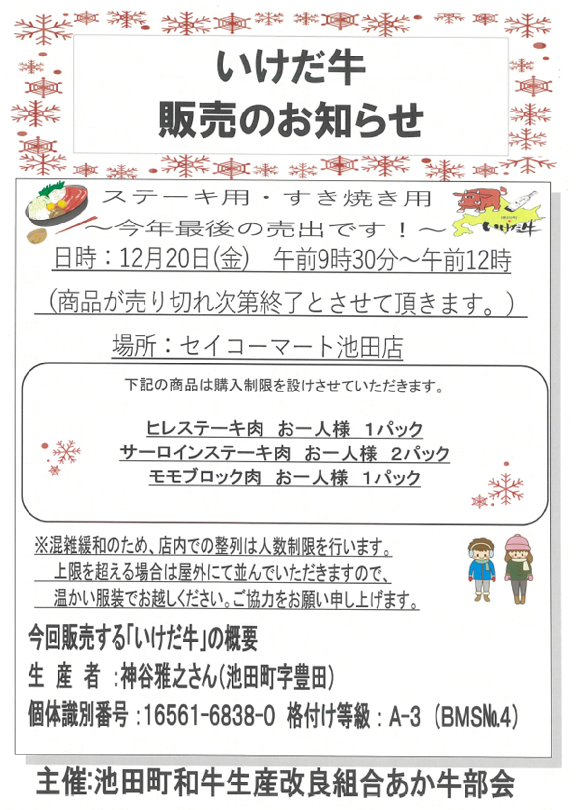 2025.12.08新着情報 イベント!いけだ牛販売のお知らせ!NEW -